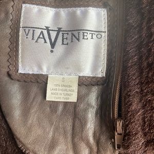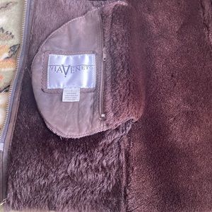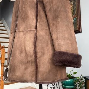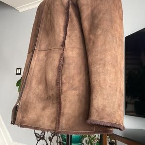 Beautiful, lightweight, warm jacket. 100% Spanish lamb shearling. Great condition, don’t see any rips or stains. 2 side pockets, one small inside with zipper. Color more darker than photos, please see last photo.