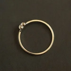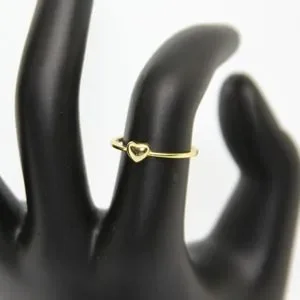 14k gold plated sterling silver, tested for quality on myself. This is a really cute addition to any outfit. Wear it in a stack or by itself. The band is 2mm thick and the heart is aprox 4mm x 4mm.