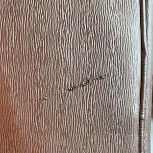 NOTE: There is some wear on the bottom and top trim, and a lifting scratch on the bottom (see photos) but the handles are in excellent condition. Does not detract from the bag at all.
