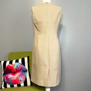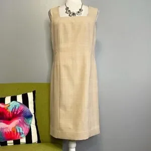 Anne Klein Tan Plaid Sleeveless Sheath Dress 10 Work Cocktail