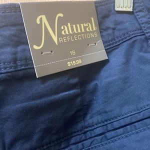 Natural Reflections women’s shorts . Knee length and in a beautiful shade of blue. Side and back pockets. Never worn.