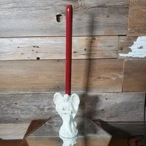 Hermitage Pottery Jade Angel Taper Candle Holder - Playing Accordion