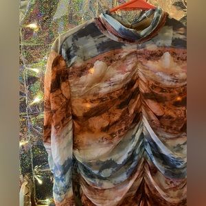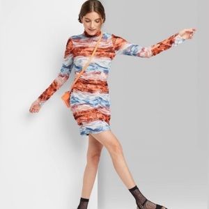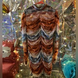 What I absolutely love about this dress is it’s the ultimate statement piece that can be dressed up or down! Pair it with sexy heels for fancy first date or rock a pair of hi-top sneakers to show off at a concert. The mesh is very breathable, the pattern is fun and original, and the Rusche detail is flattering on all bodies!