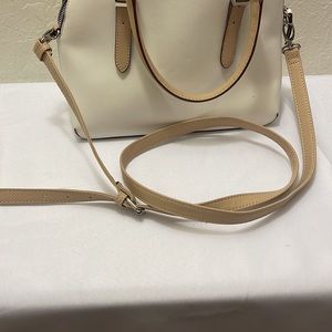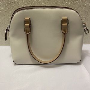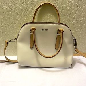Nine West White and Tan leather Shoulder Bag. Never Worn two side pocket and zip up in the middle. Excellent Condition
