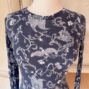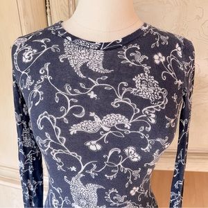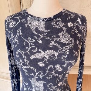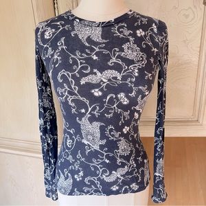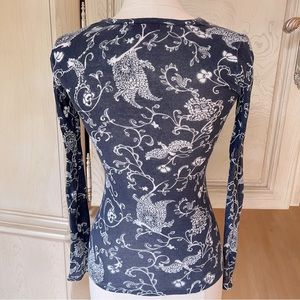 Lilly Pulitzer Navy and White 100% Cotton Long-Sleeve Printed Top / Sweater
