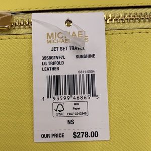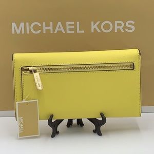 MICHAEL KORS JET SET TRAVEL LARGE TRIFOLD WALLET SUNSHINE COLOR