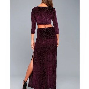 Perfect Night Plum Purple Velvet Print Maxi Dress