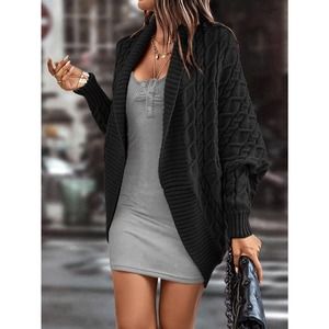 Shawl Collar Cable Knit Batwing Sleeve Duster Cardigan sweater black oversized