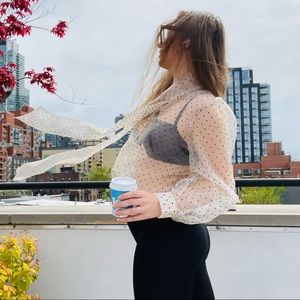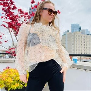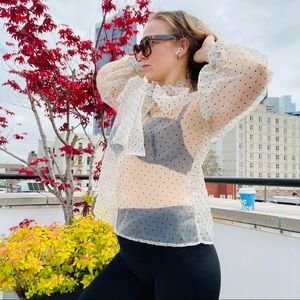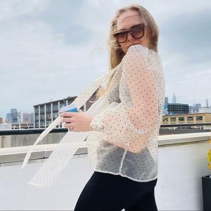 COPY - Transparent Polka Dot Puff Sleeve Shirt Bishop Statement Sleeves Neck Bow