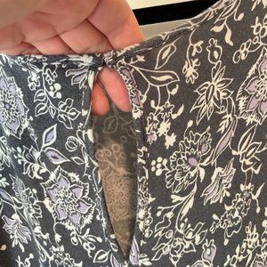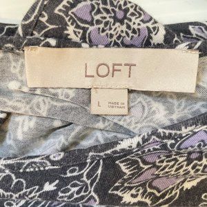 LOFT Dress L Gray Lavender Purple White Soft Rayon Floral Print