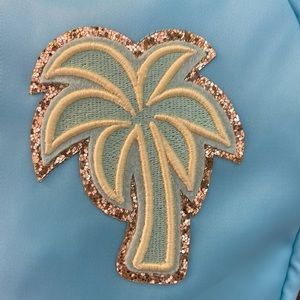 Small Blue Pouch with Palm Tree Patch. Zipper Pouch