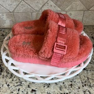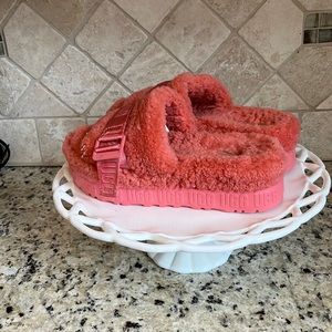 UGG FLUFFITA Slides Pink Blossom Women's Sherling Size 8 Platform