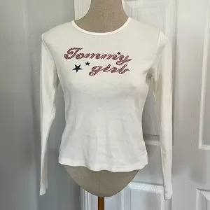 Vtg Tommy jeans Girl top Hilfiger White long sleeve shirt embellished jersey L