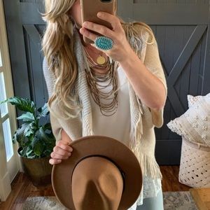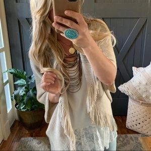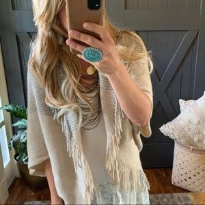 New Cozy Western Fringed Poncho Blanket Cardigan Sweater - Wrap Shawl Top