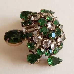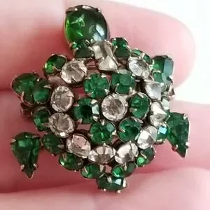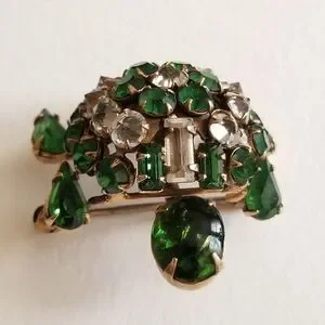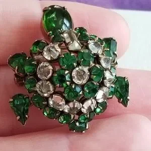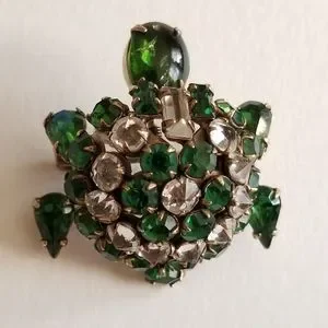 Relisted -Vintage turtle brooch trembler Rhinestone pin unsigned Shreiner tortoi