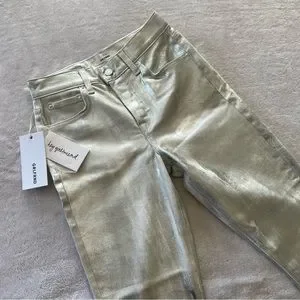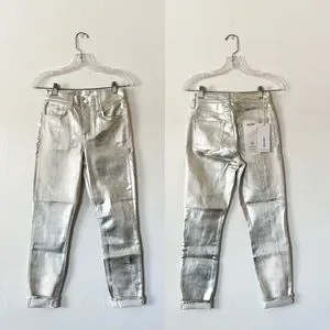 NWT GRLFRND Karolina Silver Metallic Skinny Jean