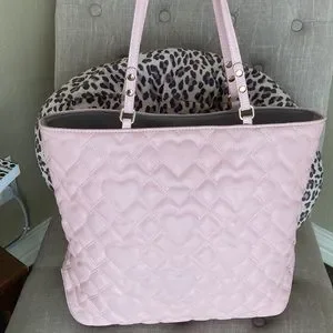 🆑 Betsey Johnson Quilted Puffy Heart Swag Tote. Gray/pink/purple hue Tote Bag
