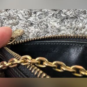 Interior has wear and minor marks. Slight vintage leather smell. Hardware was wear and tarnishing. Clasp has scuffing and chains have some fading/coating loss. Date code is not available due to vintage model style.