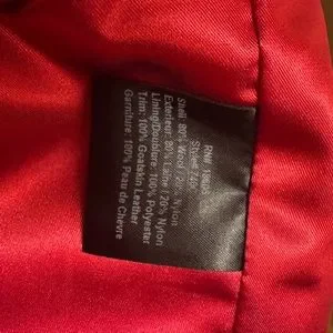 “We took our classic melton wool peacoat and updated to a more tailored fit. We added leather trim details and a red satin lining, so you can look cool while staying warm. “