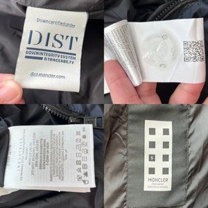 Long sleeve panelled quilted nylon down-filled jacket colorblocked. Logo printed in blue and white throughout. Bungee-style drawstring at hood. Stand collar. Two-way zip closure at front. Panelled nylon and grosgrain logo appliqué at chest. Elasticized cuffs and hem. Quilted logo at back. Zippered pocket at fully lined interior. Black hardware. Tonal stitching. Fill: 90% down, 10% feathers.