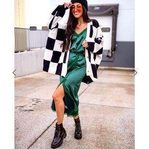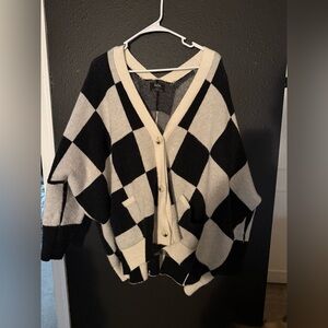 PRICE FIRM • LALA ORIGINAL DESIGN: Love You Oversized Checkerboard Cardi