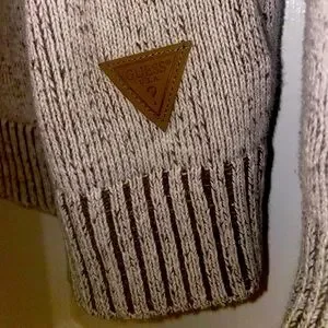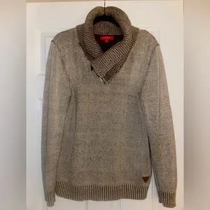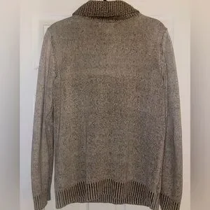 It’s a nice warm sweater, very comfortable and stylish. Goes well with black/bluejeans or blue/natural khakis. Casual or Out to Dinner. It’s not super baggy and snug on the arms, for a clean fit. LIKE NEW!