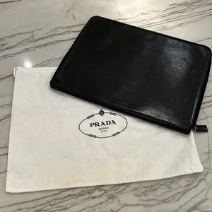 Vintage Authentic PRADA Black Leather Document Holder w/ Zipper