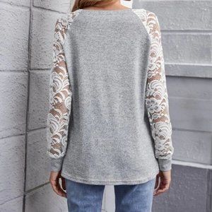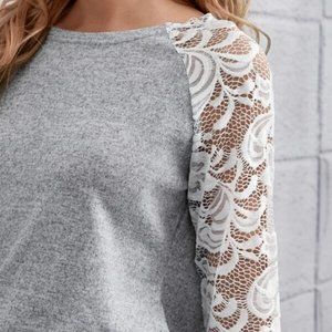 Causal lace details Long sleeved Top GRAY