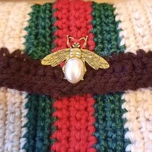 • Adjustable green/red striped strap with embroidered golden bees- with a removable & customizable feature