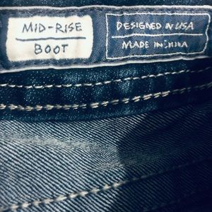 Here are a beautiful pair of “Miss Me” mid-rise boot cut jeans. They are bejeweled all over the front pockets as you can see in the photos. The button and zipper are in working condition. There are no tears, stains or odors. These jeans would look amazing with your fave shirt, sweater or sweatshirt.