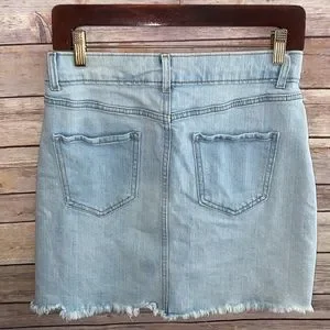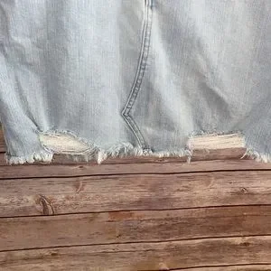 Wild Fable Factory Distressed Denim Skirt Size 4. Great Condition no flaws. Top of the skirt to hem measures 15 1/4” approx.