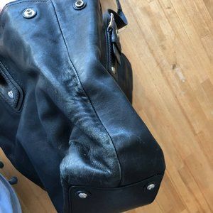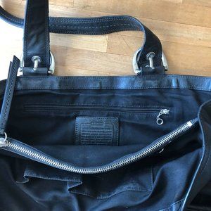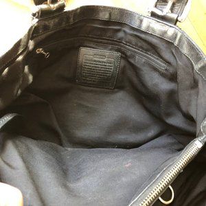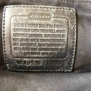 Leather. Color black. Authentic Coach Purse. 3 large compartments, 2 zippers.