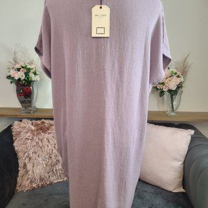 NEW mo:vint Lavender Linen Short Sleeve Dress with Pockets