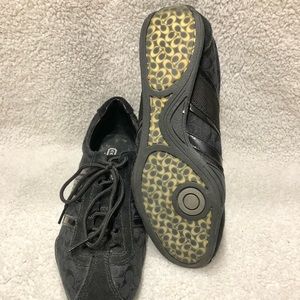 Signature fabric accented with plush suede and patent leather stripes transforms a sporty style with refined texture and a luxe Coach look. Signature jacquard fabric upper with lace-up vamp with suede trim. Coach logo on outside of shoe, tongue & heel.