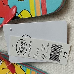 Disney Collection Mickey & Pluto Flip Flops Youth 11/12 Blue & Red