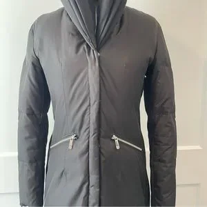 @neverfull10 Hi. It is more of a winter coat. I must have cut off the content labels but it feels like a lightweight down.