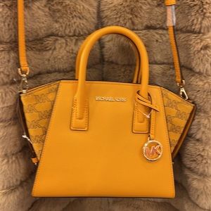 Michael Kors Avril Small Signature PVC Top Zip Satchel Crossbody Bag Honeycomb