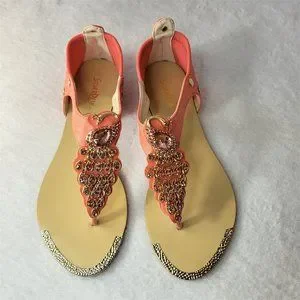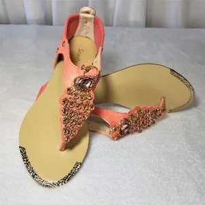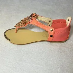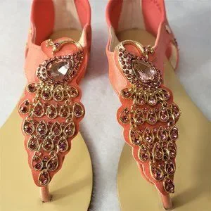 Coral Pink Summer Sandals Rhinestone Peacock Bird Thong Strap