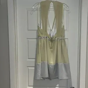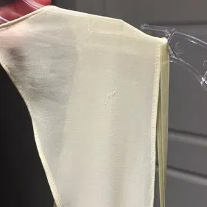 Worn once, minor burn hole on front left hand side, small amount of pulling on back right