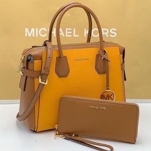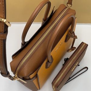 MICHAEL KORS MERCER MEDIUM TOP ZIP BELTED SATCHEL & LARGE CONTINENTAL WALLET