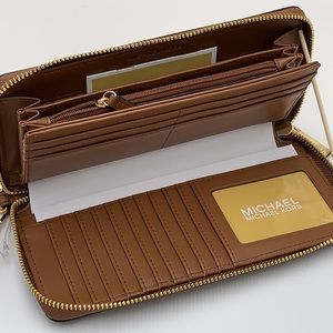 MICHAEL KORS LARGE TRAVEL CONTINENTAL WRISTLET WALLET LUGGAGE COLOR