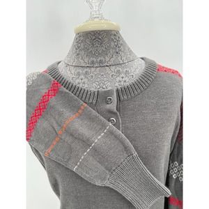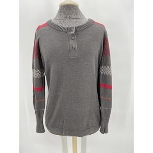 Woolrich Women's 3 button sweater size Medium grey with red detailing