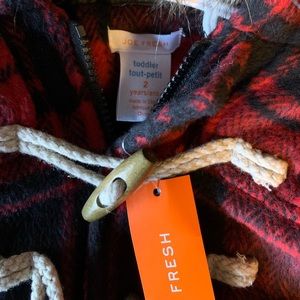 A dressy coat for your toddler! Can be boys or girls, brand new with tags. Buffalo style print perfect for the upcoming holiday season.