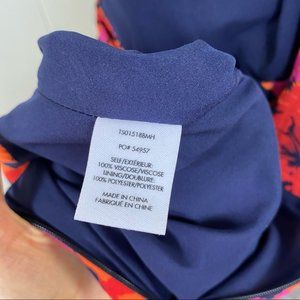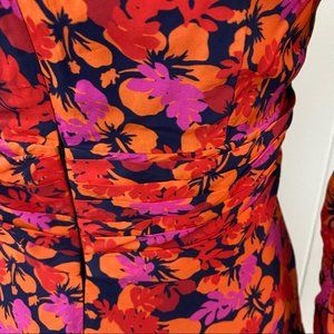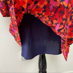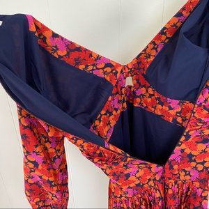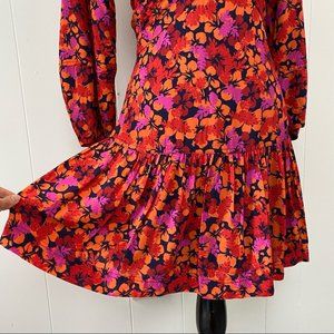 A flounce dress with a vibrant floral print, keyhole cut-out and on-trend balloon sleeves. Color midnight - pink orange navy tropical floral print