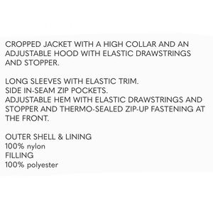 NWT ZARA PUFFER JACKET WATER REPELLENT CROP PUFFY JACKET CROPPED COAT XS
