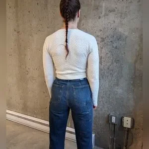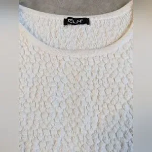 White Long Sleeve Stretch Top Size S in good used condition. This thick long sleeve top is a textured top with stretch. I took off the material tag and it's a standard poly blend. No damage, rips, tears or marks.