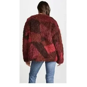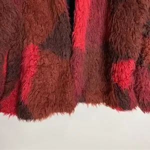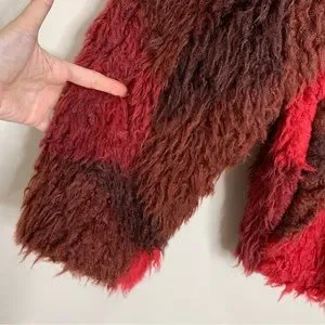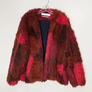 NEW IRO Sechura Patchwork-Effect Faux Fur Jacket *Mixed Red* Sz FR 44 / US 12