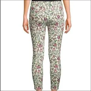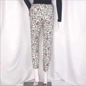 L’Agence Cream Floral Print Margot Skinny Cropped Jeans Sz25 Zip Fly ButtonClose