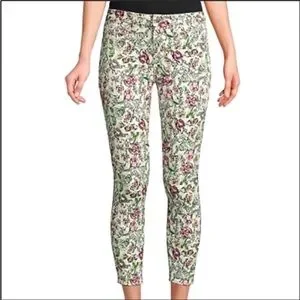 L’Agence Cream Floral Print Margot Skinny Cropped Jeans Size 25 Zip Fly & Button Closure with 2 Back Pockets & 2 Front Faux Pockets 94% Cotton 4% Polyester 2% Spandex