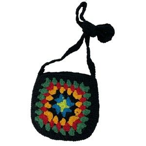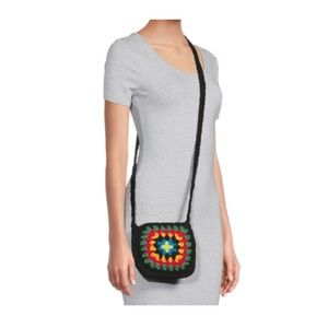 New purse crossbody festival crochet Boho Vibe Open Top Bag Black